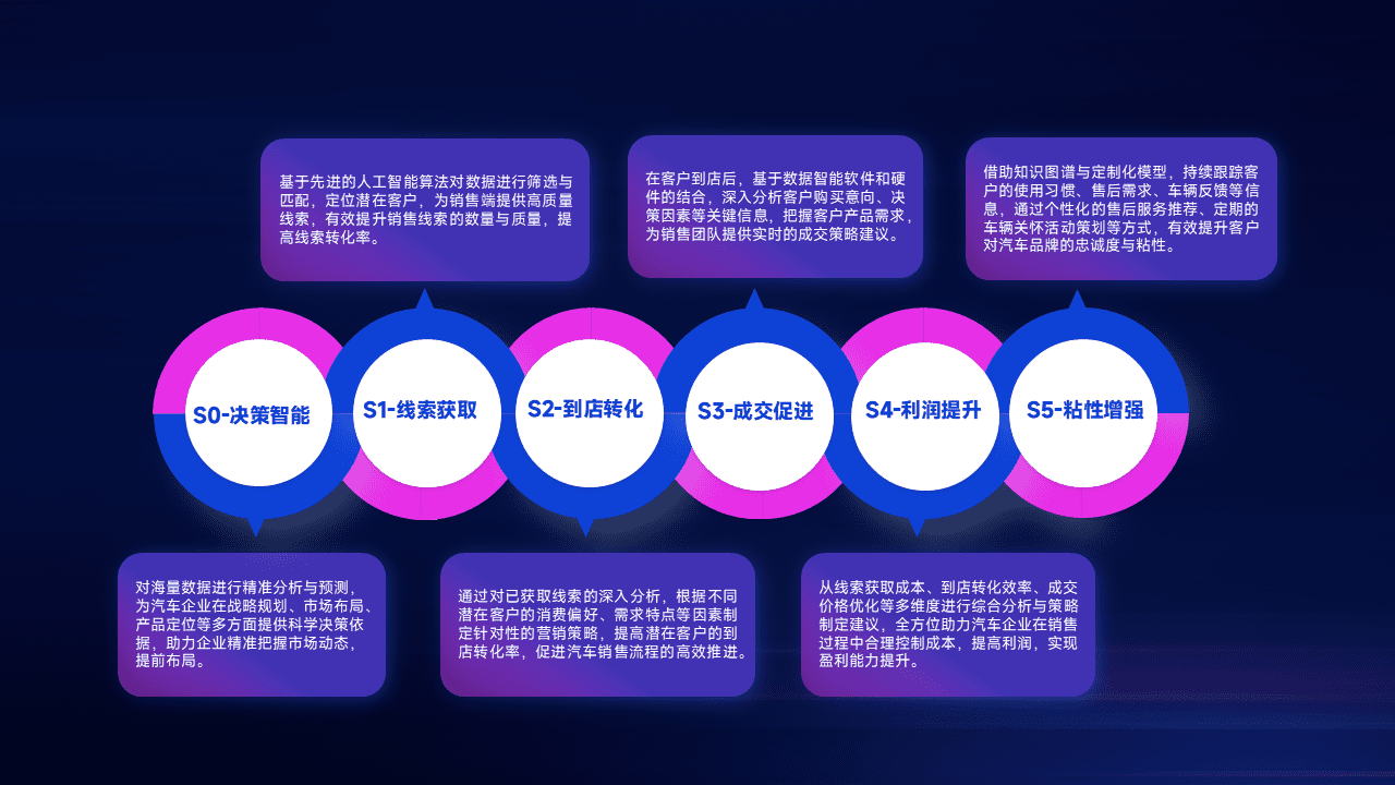 通过拓宽潜在客户来源、、、优化线索分配并提高到店转化率,,以增强销售效率。。。同时,,,利用线索数据不断优化分析模型,,有效提升转化率,,扩大营销影响力。。。